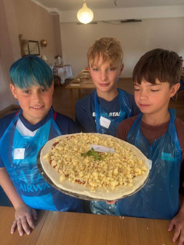 Podczas warsztatów kulinarnych dzieci poznały tajniki przygotowania prawdziwej pizzy – od wyrabiania ciasta, przez dodawanie ulubionych składników, aż po jej wspólne degustowanie.