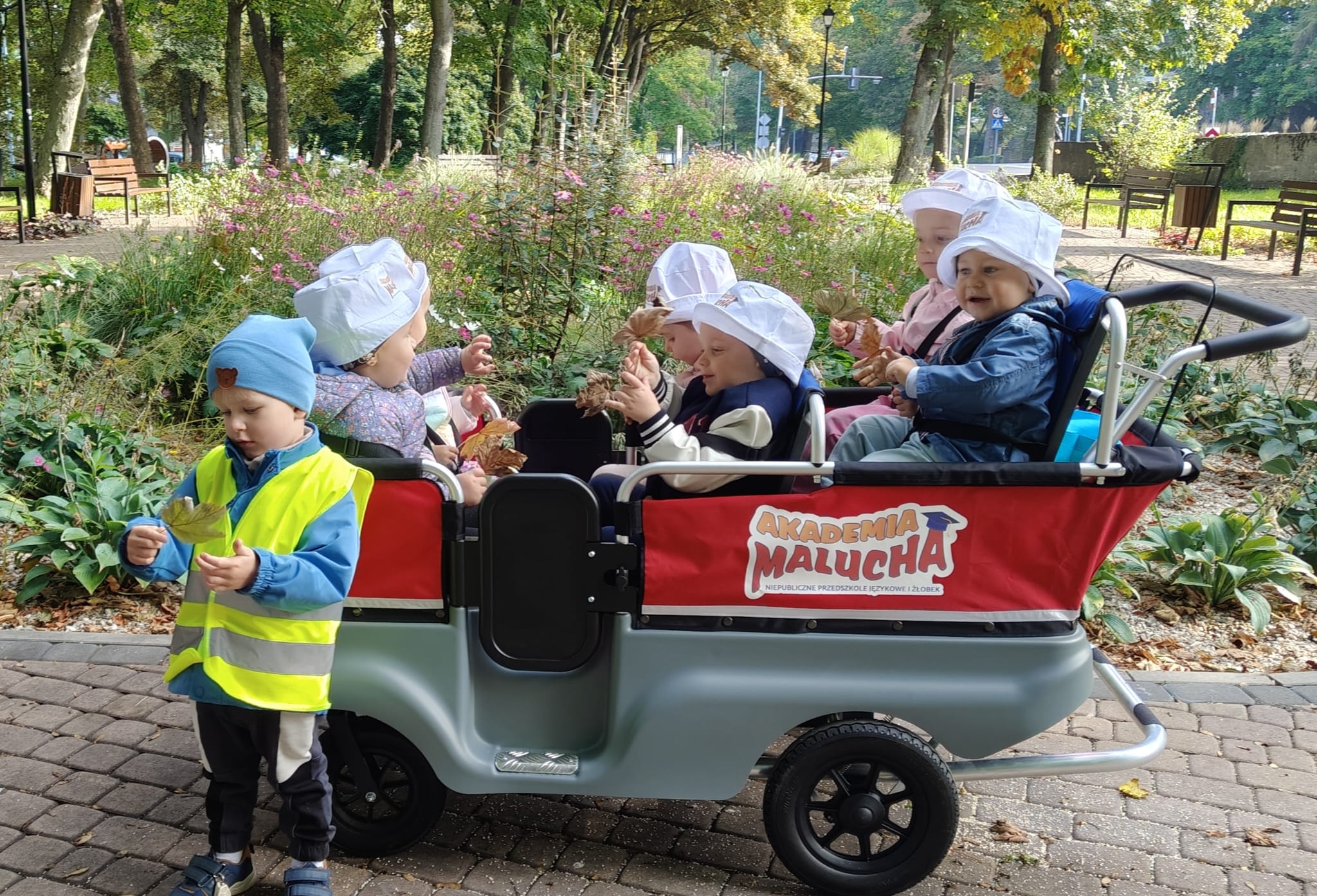 Jesienny spacer grupy żłobkowej i jazda próbna nowym pojazdem żłobkowym.