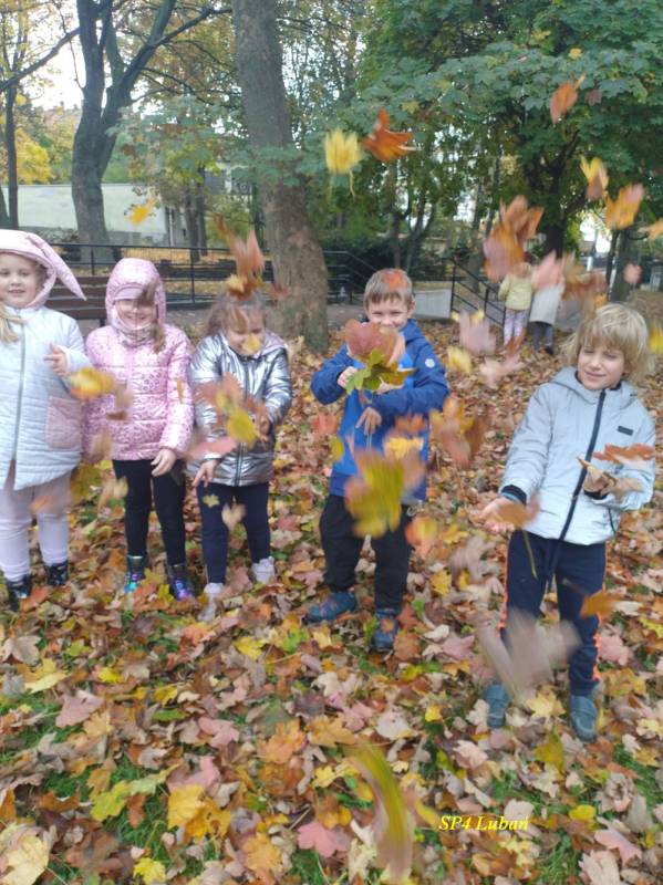Celem wyprawy było poznanie charakterystycznych cech tej pory roku oraz utrwalenie nazw drzew i rozpoznawanie ich liści. Podczas spaceru dzieci z zainteresowaniem obserwowały otoczenie, zauważyły, że liście przybierają różne barwy – od żółtej, przez pomarańczową, aż po czerwoną i brązową. Uczniowie zbierali kolorowe liście, które później wykorzystają do prac plastycznych w klasie. W trakcie zabawy w parku dzieci wpadły na pomysł, aby z zebranych liści i gałązek zbudować schronienia dla jeży, które przygotowują się do zimowego snu. Wspólnymi siłami stworzyły kilka małych „domków” pod drzewami. Działanie to sprawiło im wiele radości i jednocześnie nauczyło troski o zwierzęta.