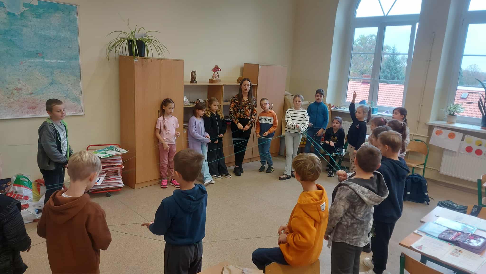 Dzieci zastanawiały się, jakie zachowania są właściwe, a które mogą sprawić komuś przykrość. Wspólnie doszły do wniosku, że prawdziwy przyjaciel to ktoś, kto potrafi słuchać, pomaga w trudnych chwilach i mówi miłe słowa. Podczas zajęć uczniowie obejrzeli również ciekawy film „Czy zwierzęta się przyjaźnią?”, który pokazał, że przyjaźń to nie tylko ludzka sprawa. Dzieci z zainteresowaniem obserwowały przykłady niezwykłych relacji między zwierzętami, ucząc się, że empatia, troska i współpraca są ważne w całym świecie przyrody. Nie zabrakło też wspólnej zabawy ruchowej „Wszyscy są dla siebie ważni”, podczas której uczestnicy uczyli się, jak mówić miłe słowa i jak doceniać obecność innych. Zajęcia dostarczyły wiele radości i pozytywnej energii, stały się też doskonałą okazją, by zastanowić się, jak ważna jest przyjaźń w życiu człowieka.