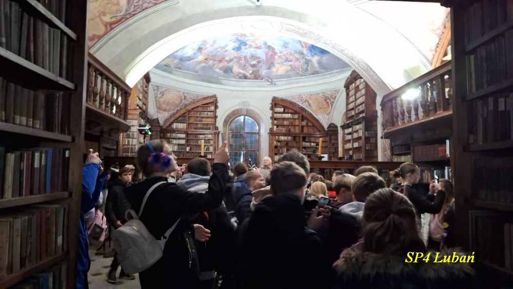 Następnie uczestnicy udali się do opactwa poaugustiańskiego — jednego z najpiękniejszych zabytków Żagania. Zwiedzili m.in. kościół pw. Wniebowzięcia Najświętszej Maryi Panny oraz zabytkową bibliotekę klasztorną, która zachwyciła wszystkich bogatym barokowym wystrojem i imponującym księgozbiorem. Podczas zwiedzania uczniowie poznali dzieje zakonu augustianów oraz jego rolę w rozwoju miasta.