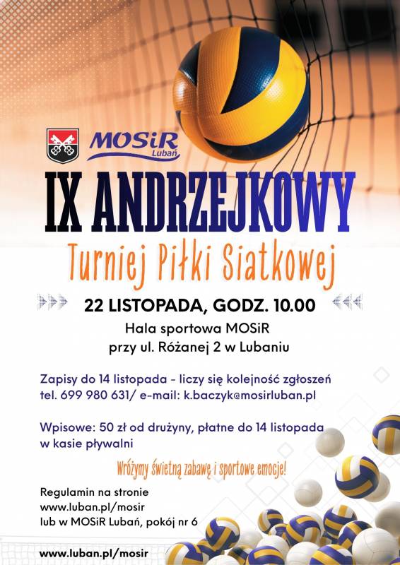 Zapisy drużyn potrwają do 14 listopada pod nr telefonu 699 980 631 lub e-mail: k.baczyk@mosirluban.pl - liczy się kolejność zgłoszeń.