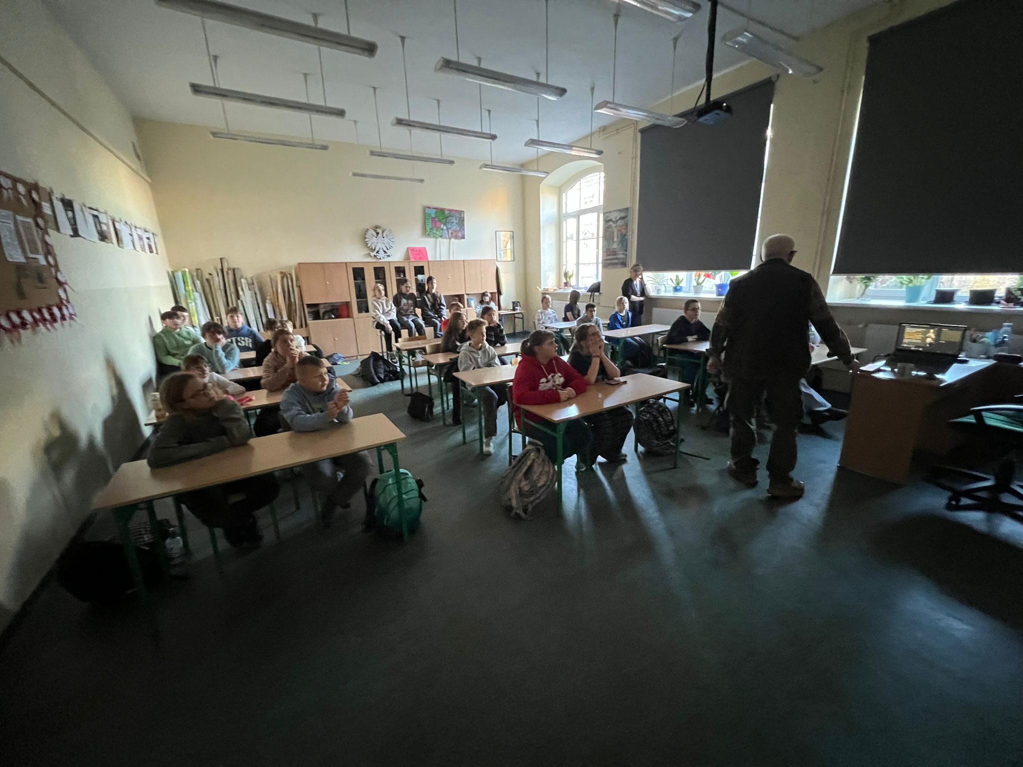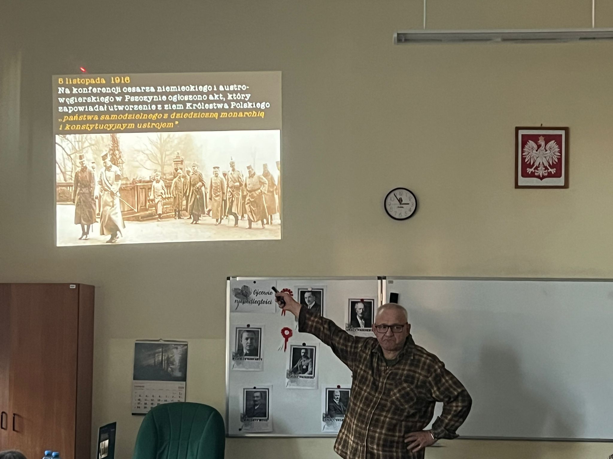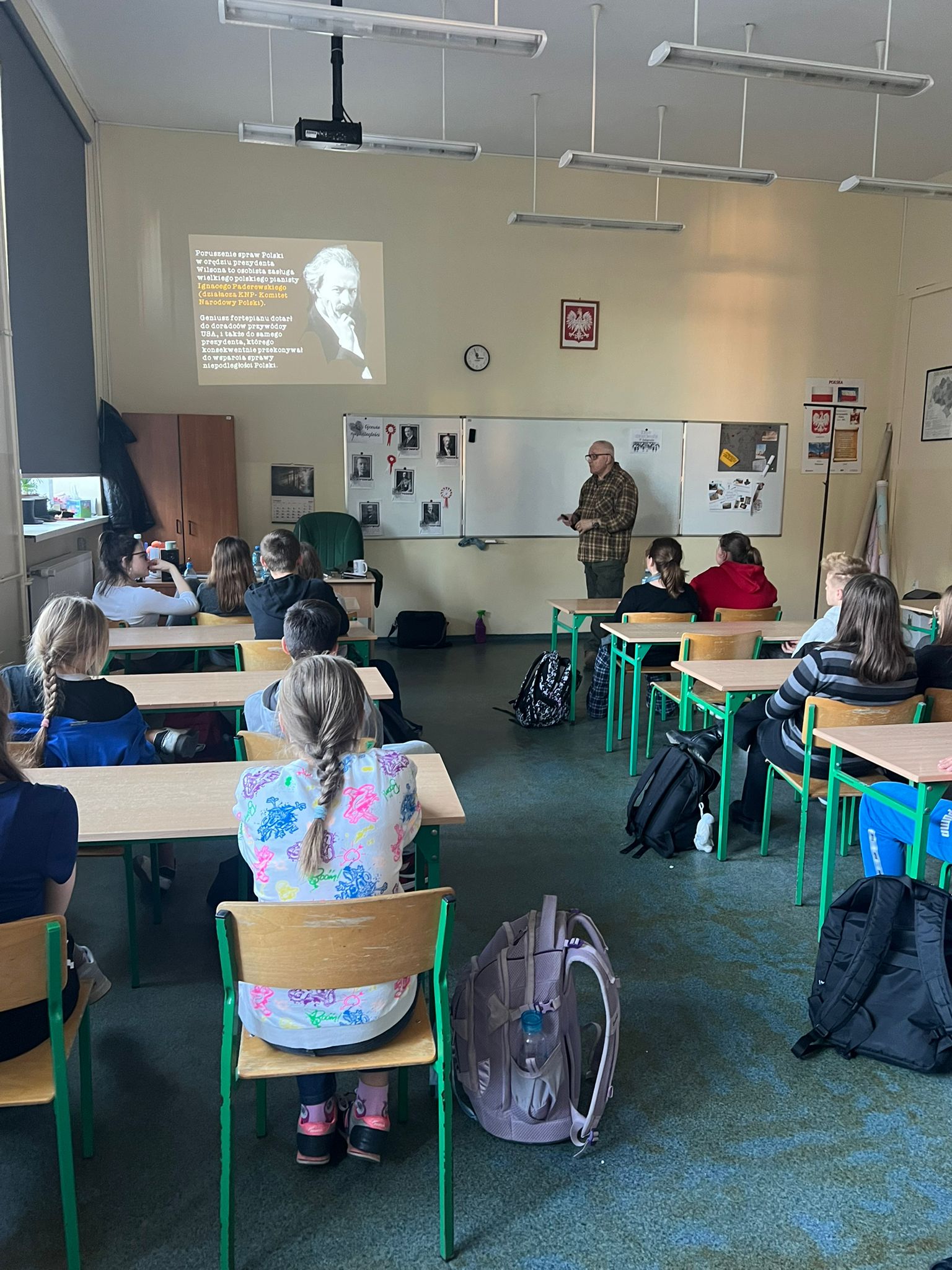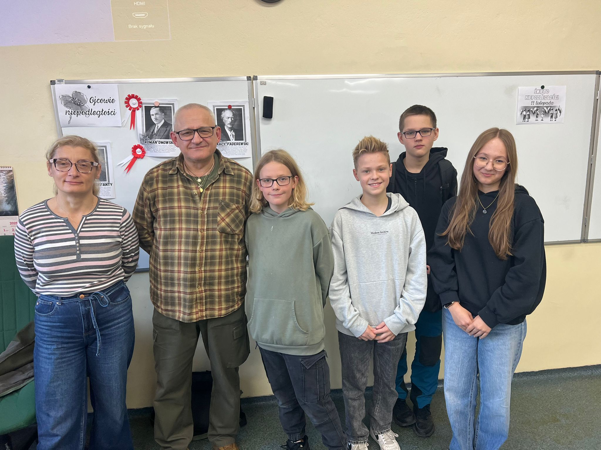 W czwartek, 6 listopada, w lubańskiej Jedynce ponownie gościliśmy pana Piotra Kucznira i panią Agnieszkę Łabuz. Tym razem nasz ceniony prelegent – podczas kółka historycznego – zainteresowanym uczniom z kl. IV-VIII przedstawił drogę Polaków do niepodległości. Młodzież z SP1 miała zatem okazję dowiedzieć się, m.in. kim byli Ignacy Jan Paderewski i Roman Dmowski, jaka była rola prezydenta USA W. Wilsona w walce o wolną Polskę oraz co inne narody sądziły o dążeniach Polaków do suwerenności.