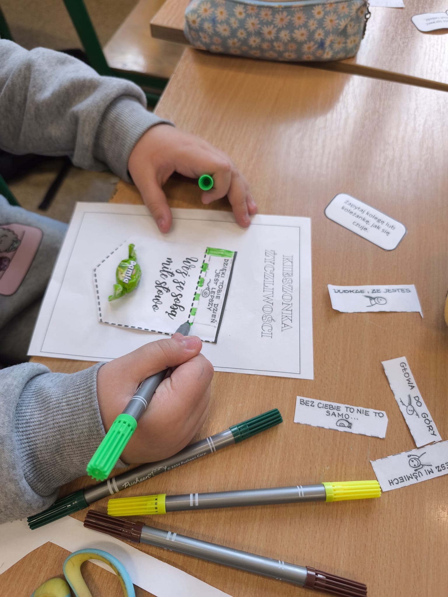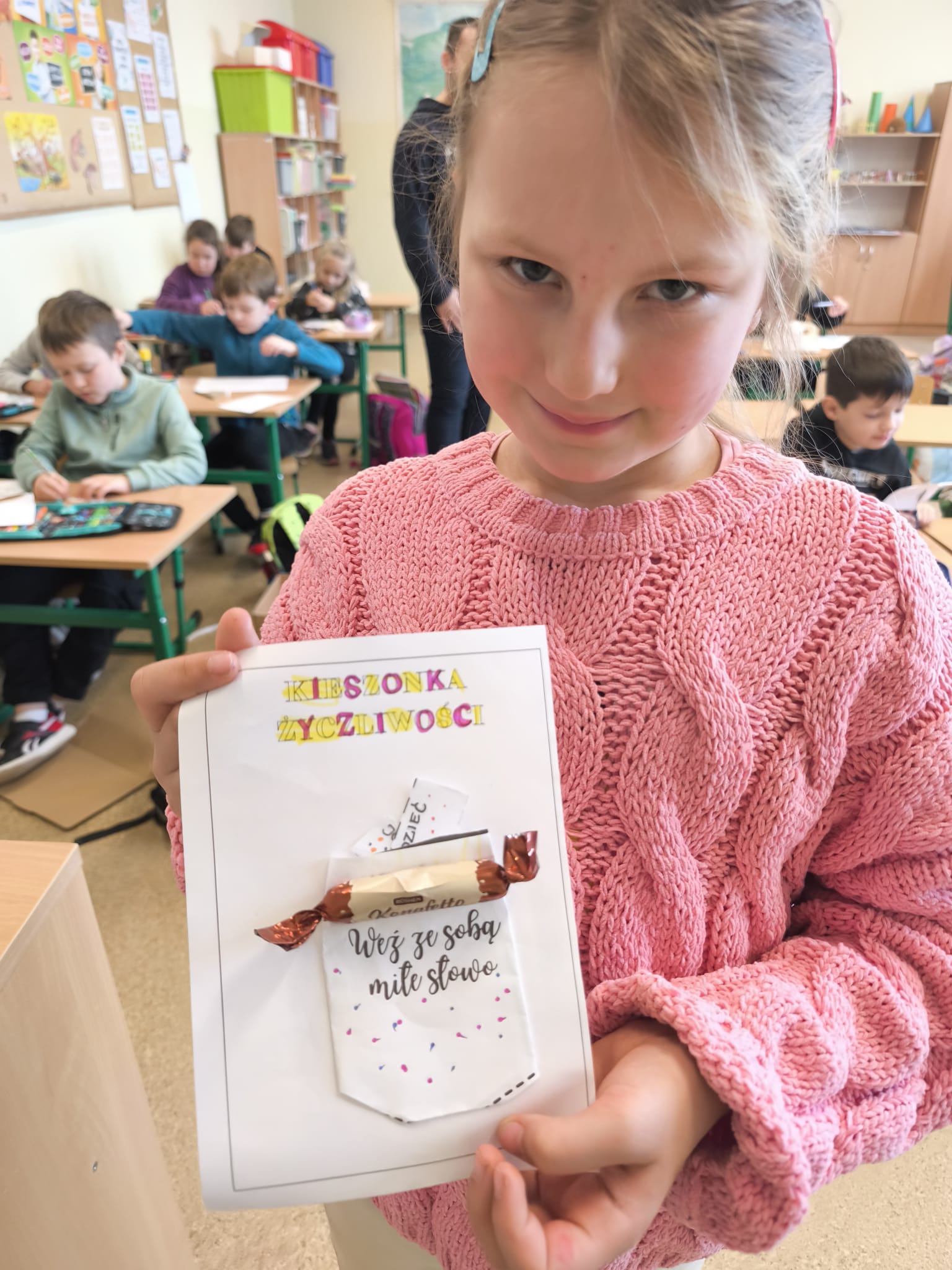 Na koniec obdarowywały nimi kolegów i koleżanki, sprawiając im sporo radości. Dzień Życzliwości był piękną lekcją empatii i szacunku. Dzięki takim działaniom uczniowie uczą się, że nawet najmniejszy gest może mieć wielką moc, a dobro, którym się dzielimy, zawsze do nas wraca.