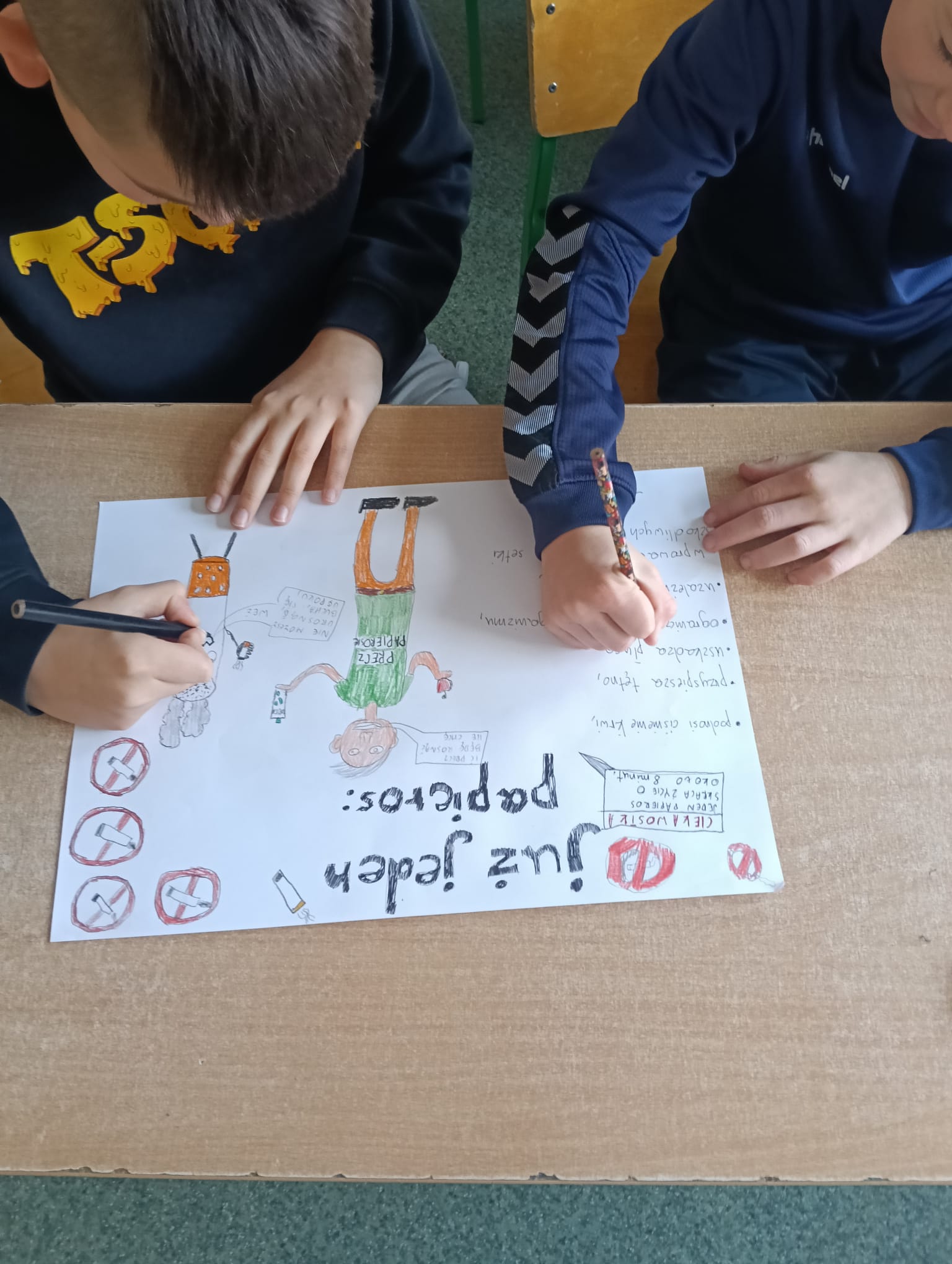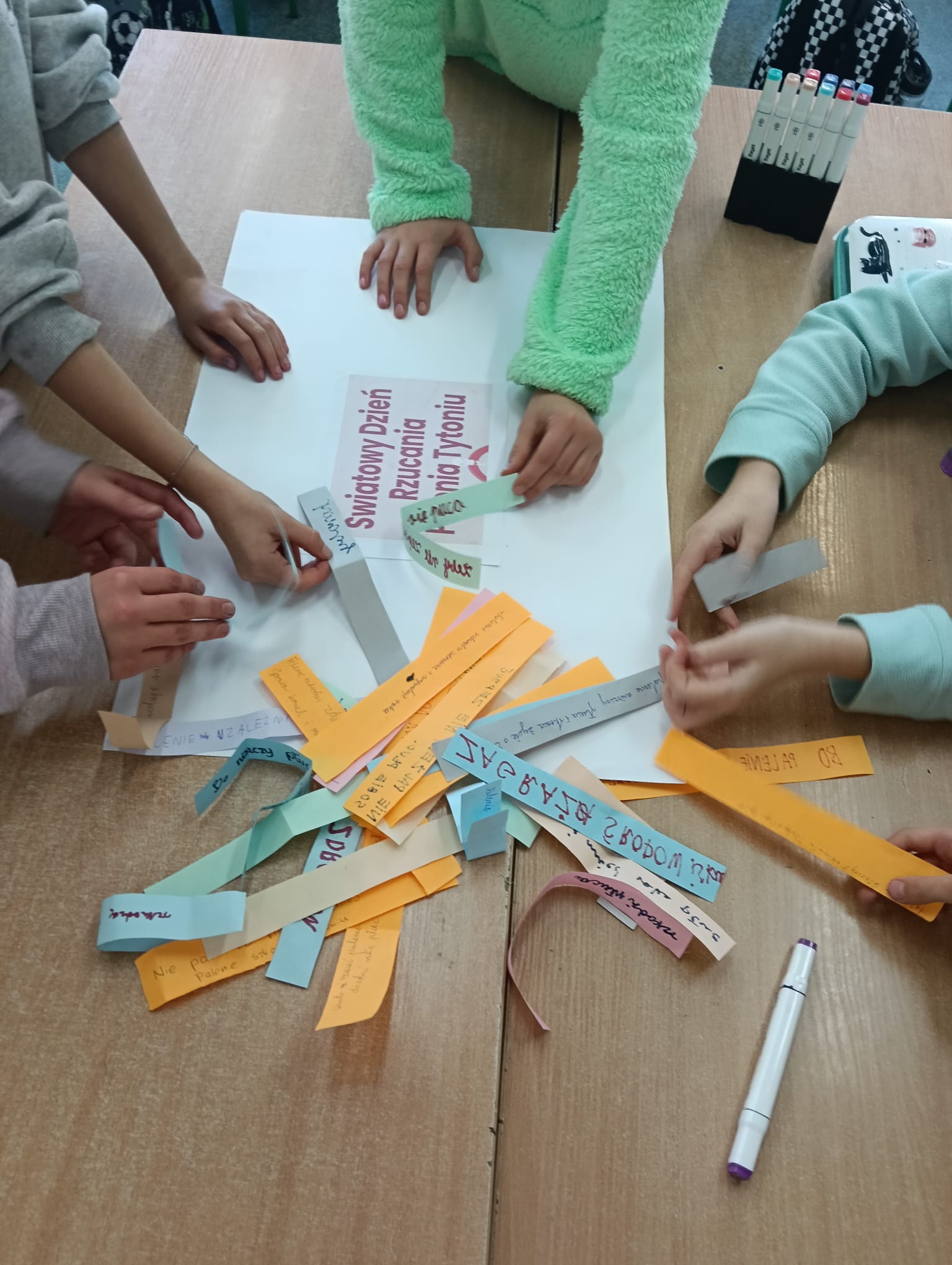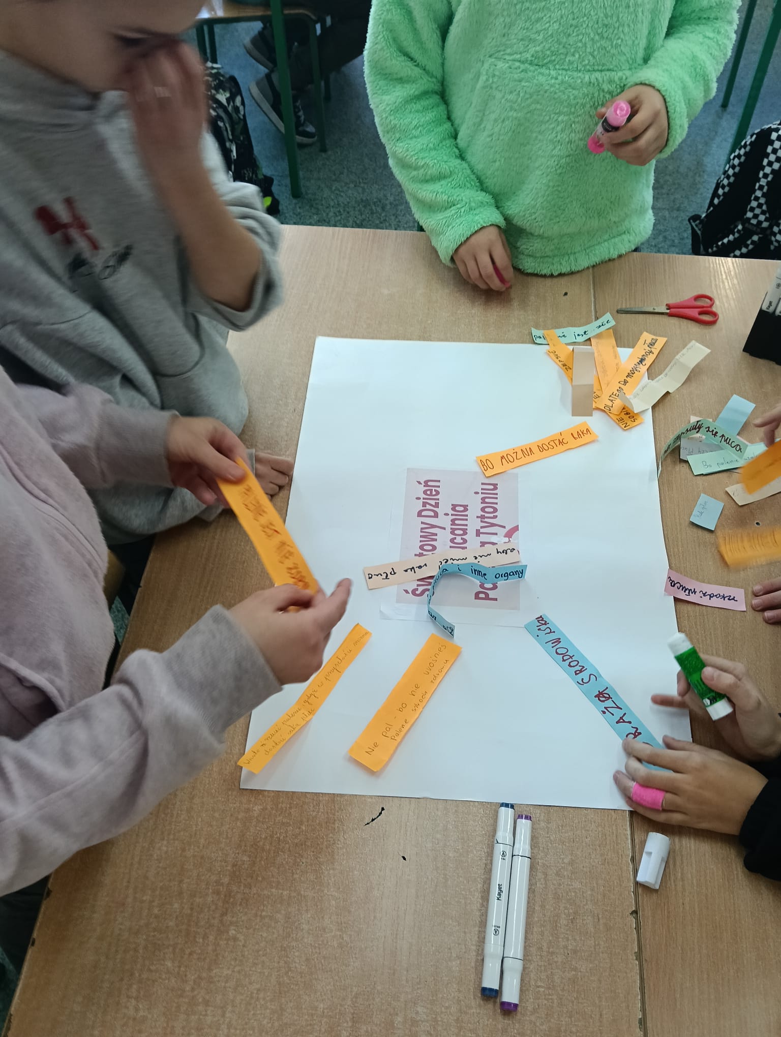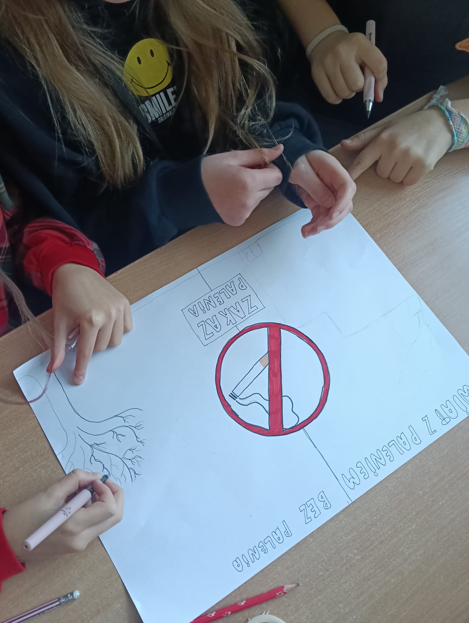 Ponadto przygotowano gazetkę z faktami naukowymi na temat szkodliwości palenia. Jednym z elementów wydarzenia była także korytarzowa gra edukacyjna zorganizowana przez panią Izabelę Biezę-Waśniewską. Na poszczególnych piętrach ukryto kody QR z informacjami o paleniu, a zadaniem uczniów było odnalezienie ich, ocena, czy przedstawiają fakt czy mit, a następnie stworzenie własnego hasła zniechęcającego do sięgania po papierosy. Najlepiej poradziła sobie drużyna z klasy VII c: Aleksander Szewczyk, Martyna Kryłowicz i Maja Atanowska. Gratulujemy zwycięzcom i dziękujemy wszystkim za aktywne zaangażowanie!