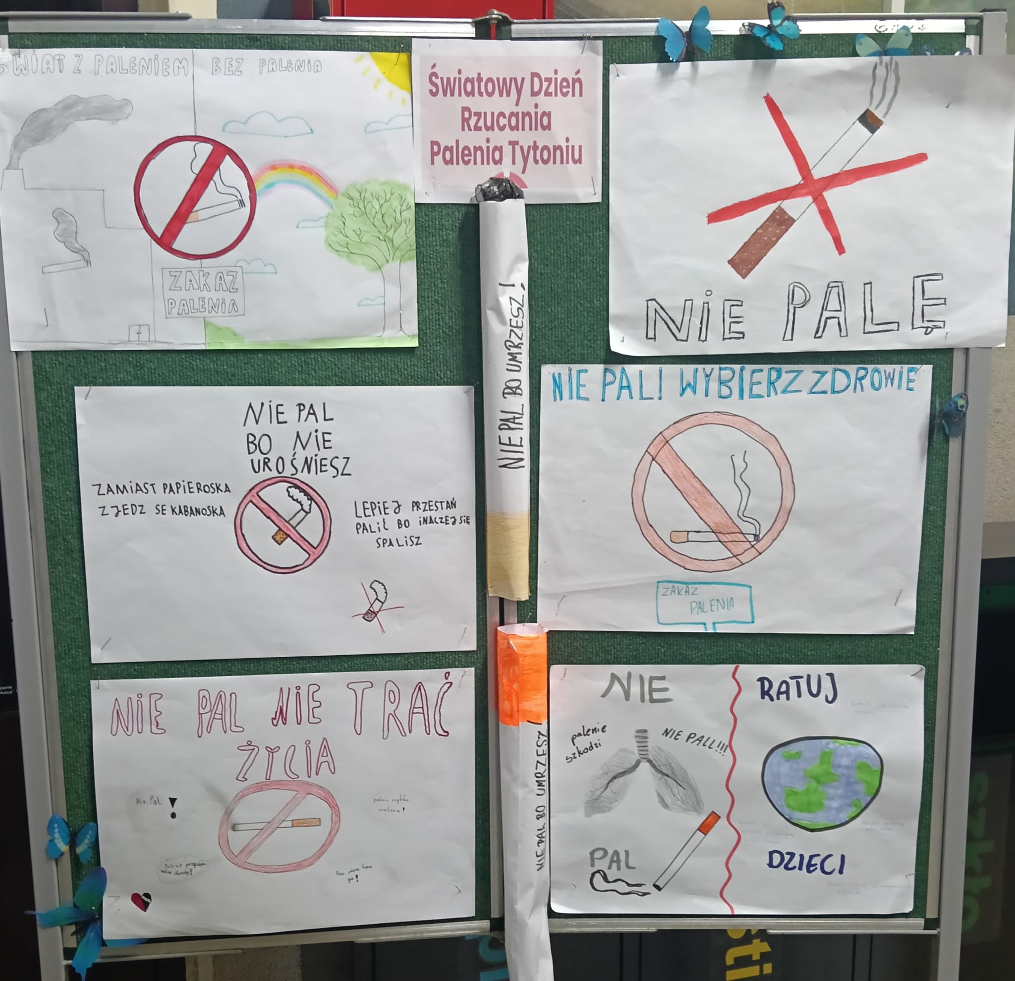 20 listopada w lubańskiej „Jedynce” obchodziliśmy Światowy Dzień Rzucania Palenia (jak co roku przypada on w trzeci czwartek miesiąca). Z tej okazji uczniowie klas 4–8, pod opieką pani Joanny Czerwiec, przygotowali na zajęciach edukacji zdrowotnej plakaty, które można obejrzeć na parterze szkoły.Dzieci z klas 1–8 wypisały również na karteczkach swoje „przestrogi” i odpowiedzi na pytanie: „Dlaczego nie należy palić papierosów?”. Z zebranych wiadomości powstał wspólny plakat pod hasłem „STOP paleniu”, również wyeksponowany na parterze.