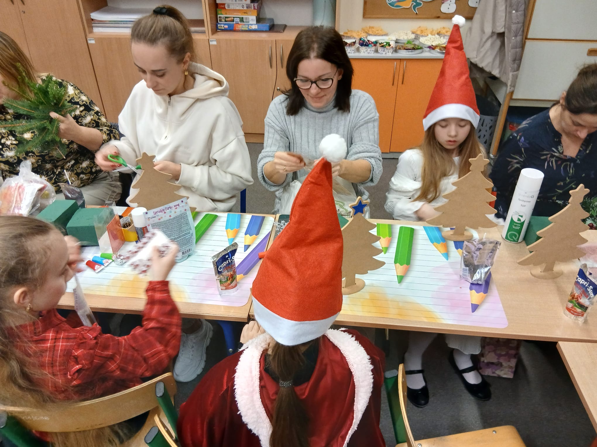 5 grudnia w naszej szkole zrobiło się naprawdę świątecznie! Podczas warsztatów dla uczniów klas trzecich i ich rodziców, czekało na wszystkich mnóstwo radości, kreatywnej zabawy. Uczniowie przygotowali piękny program artystyczny, który wprowadził wszystkich w świąteczny nastrój. Nic więc dziwnego, że chwilę później pojawił się najprawdziwszy Mikołaj z workiem pełnym prezentów! Tego dnia wspólnie tworzyliśmy stroiki świąteczne, ozdabialiśmy choinki i dekorowaliśmy pierniczki – a to wszystko w cudownej atmosferze.